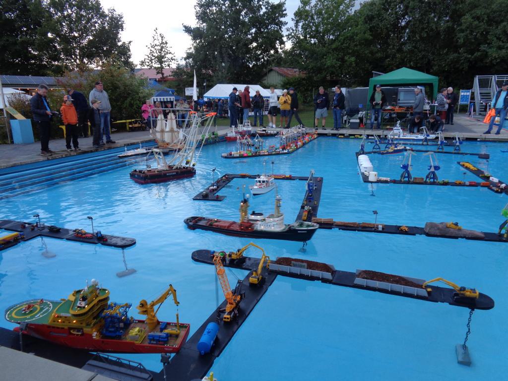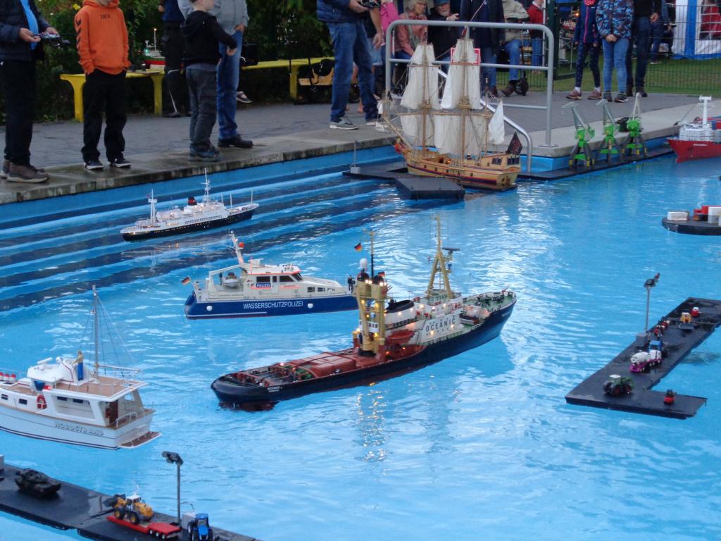 Gegen 19:30 Uhr wurde es dann langsam dunkler und die Modelle fuhren mit Beleuchtung durch das Schwimmbecken. Um 20 Uhr machten wir uns auf den Rückweg. Rundum eine sehr gelungene Veranstaltung mit sehr großer Beteiligung.